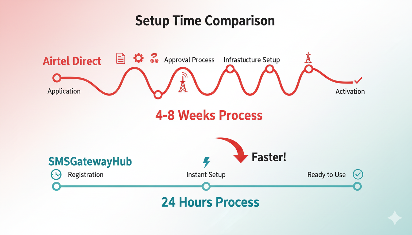 Some articles claim Airtel SMS setup takes "4-8 weeks"—this is significantly exaggerated. Here's the realistic timeline:
