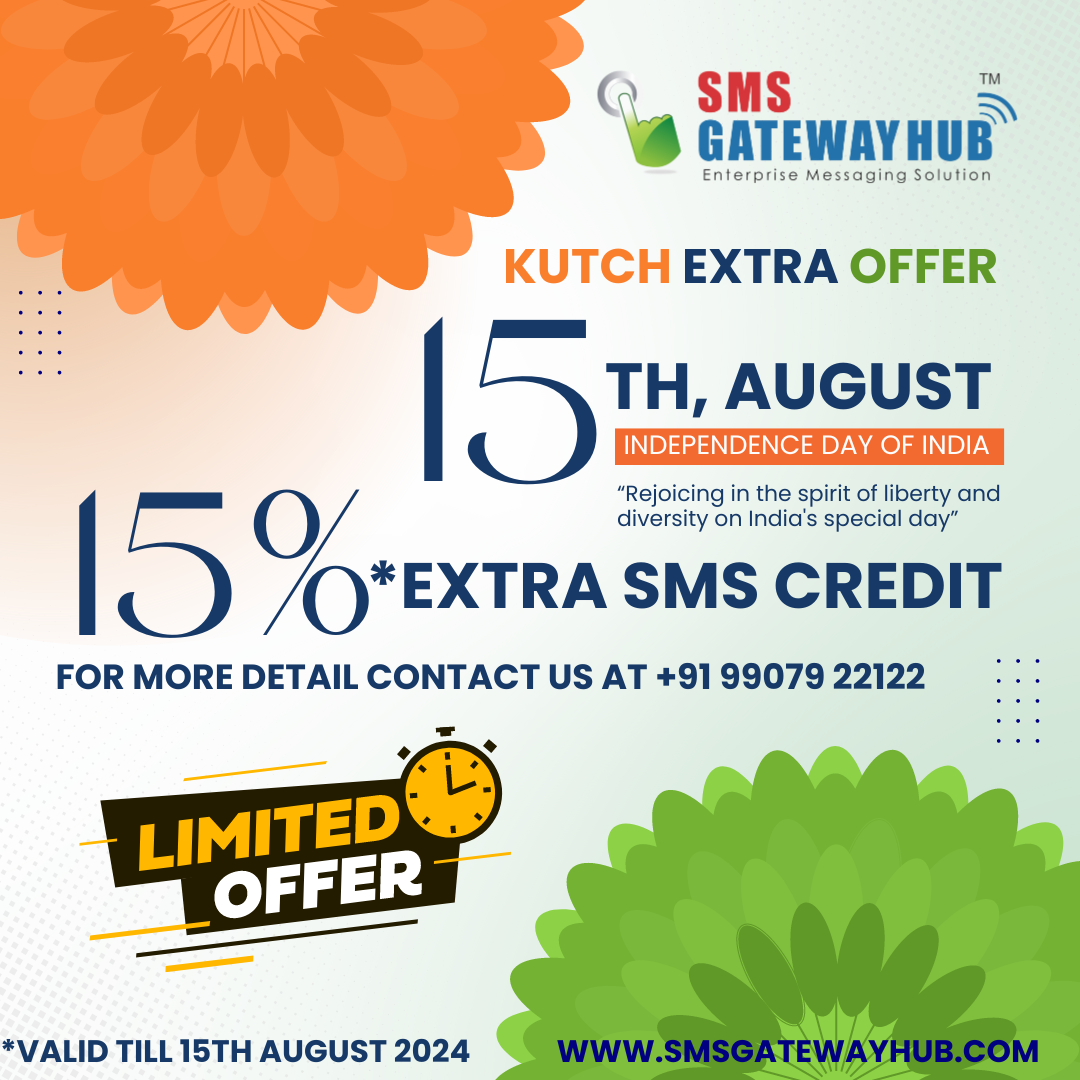 - 15% Extra on SMS credits purchased (25000 SMS, 50000 SMS, 100000 SMS)