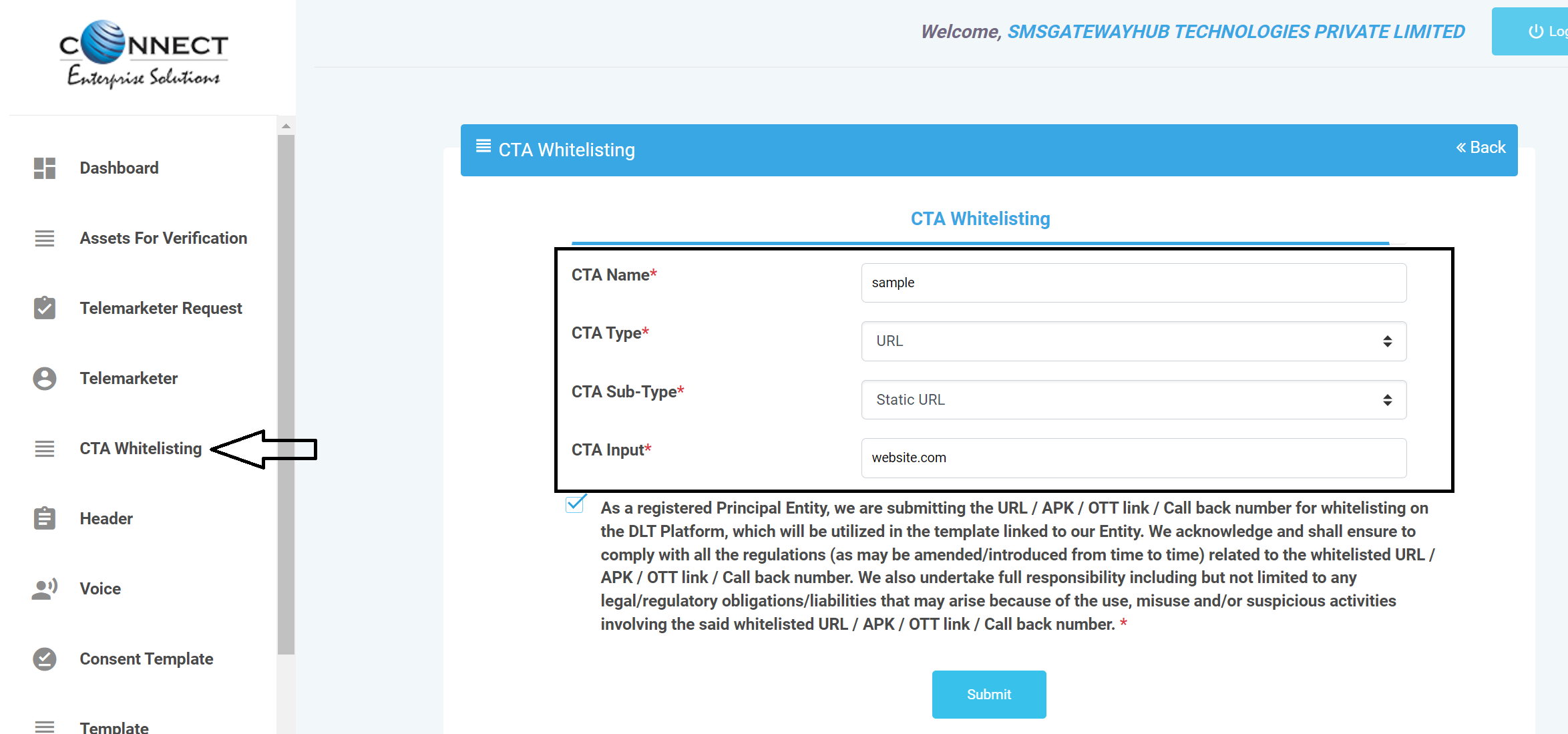 All major DLT Operator Done Changes in there Portal >Pingconnect /Smartping > CTA Whitelisting