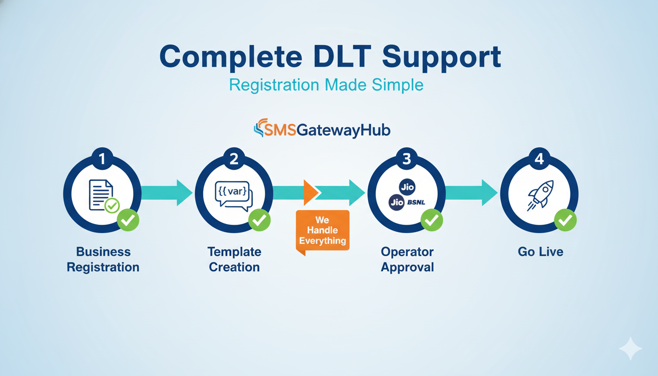 TRAI's DLT registration requirements have created compliance challenges for businesses nationwide. SMSGatewayHub simplifies this complexity by offering comprehensive DLT support. The dedicated compliance team assists with template creation, sender ID registration, and entity approval across all operator platforms.
