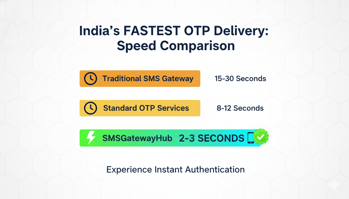 Speed defines success in digital authentication. When customers await verification codes to complete purchases, access accounts, or confirm transactions, delays translate directly into abandoned carts and frustrated users. SMSGatewayHub has engineered India's fastest OTP SMS service, delivering authentication messages in record time while maintaining industry-leading reliability standards.