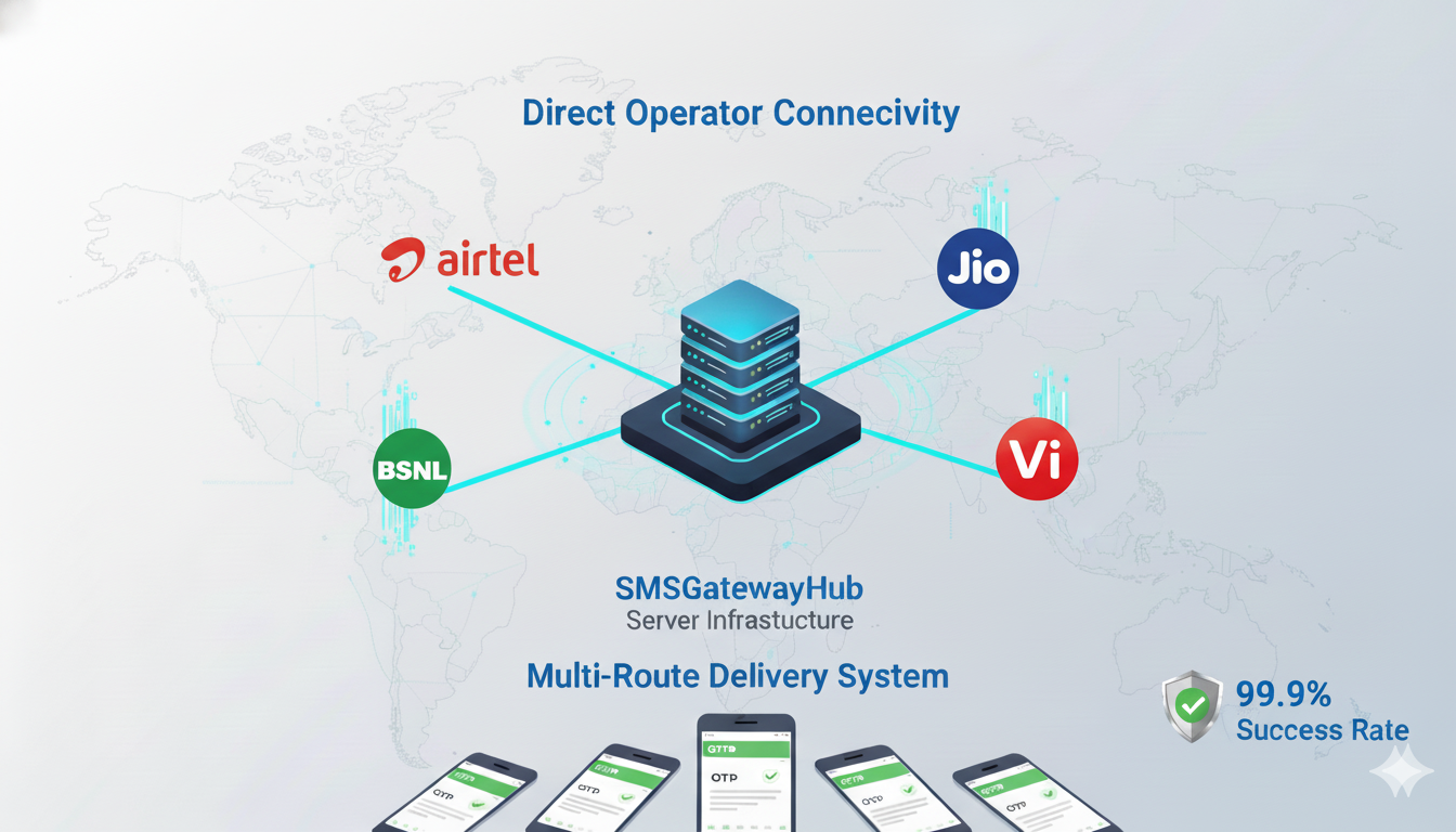This speed advantage comes from direct SMPP connectivity with all major Indian telecom operators. Unlike conventional bulk SMS providers that route messages through multiple intermediaries, our SMS gateway connects directly to Airtel, Jio, Vodafone Idea, and BSNL networks. This architectural choice eliminates bottlenecks and ensures priority delivery for time-critical authentication messages.