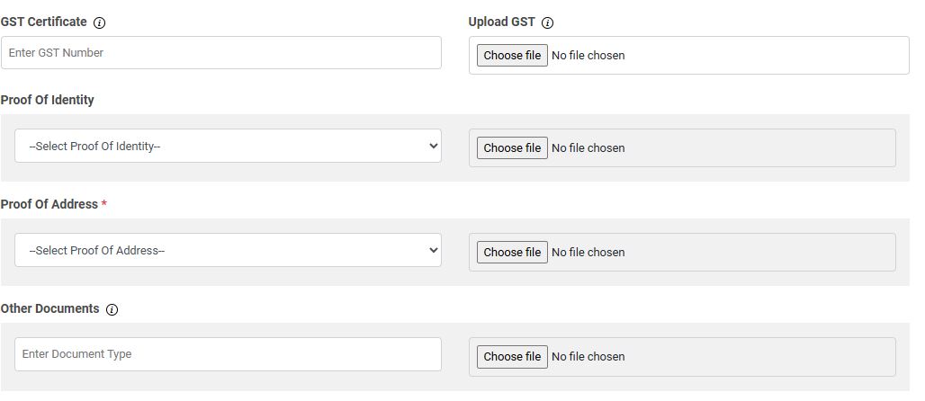 - Proof of Address: Upload Certificate of Incorporation, GST Certificate, or Shop & Establishment License