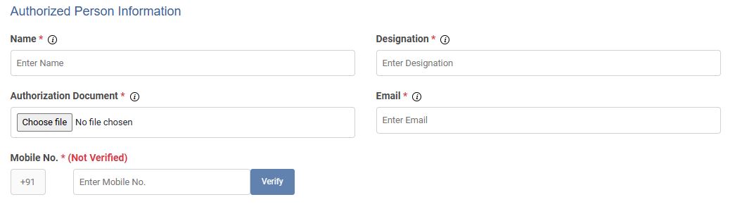 - Entity Type: Select from Private Limited, Partnership, Sole Proprietorship, or LLP